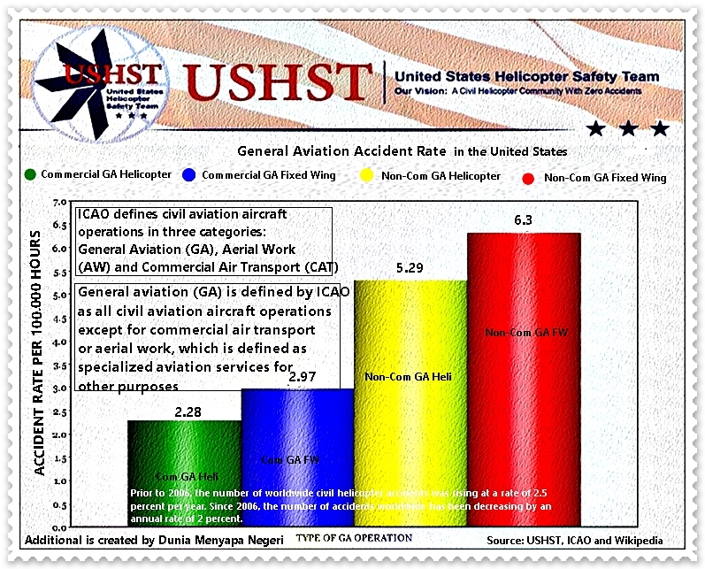 Sesuai data dari National Academy of Sciences, Amerika, negara ini memiliki 190.000 pesawat beregistrasi sipil (182.000 di antaranya berjenis sayap tetap dan 7.000, bersayap putar, namun ada sumber data statistik lain menyebutnya sejumlah 9.348 helikopter). Selain itu di Amerika terdapat 5.000 bandar udara yang terbuka untuk umum, dan memiliki ± 600.000 pilot. Jumlah itu semua menjadikan Amerika menjadi negara terbanyak di dunia yang memiliki pesawat sipil, bandar udara untuk umum dan pilot. Bisa dibayangkan bila pesawat sejumlah itu secara bertahap harus memasuki masa pensiun, yang kemudian akan digantikan oleh pesawat baru lainnya.